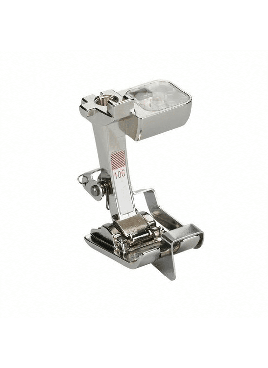 De smalle kantvoet #10C is een praktisch hulpmiddel om afgewerkte zomen en randen gelijkmatig en recht door te stikken. De voet is ook geschikt voor het aannaaien van kant en bandjes. Ook voor het doorstikken van boorden, plooien en zomen is de smalle kantvoet #10C ideaal. Met de geleidingsplaat in het midden van de voet kunnen er in een handomdraai parallel aan de rand lopende naden en zomen worden gecreëerd. Ontdek nu de smalle kantvoet #10C – de professional voor exact afgewerkte randen.