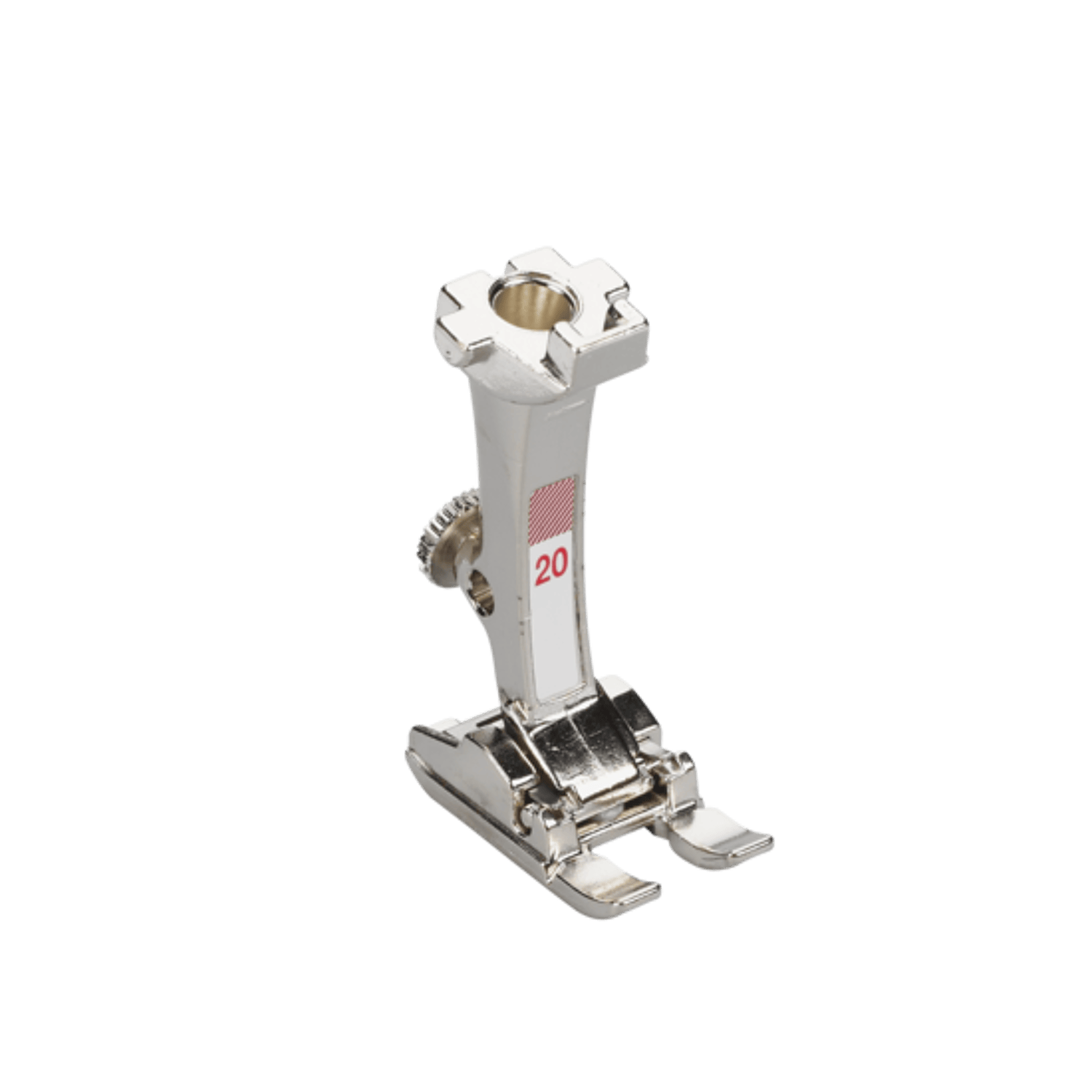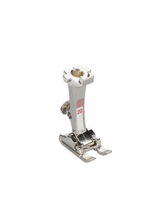 De open borduurvoet #20 is een specialist voor borduren met de naaimachine. Hiermee kunt u naast mooi Richelieu-borduurwerk en ronde stiksels maken, ook lijnen en patronen volgen. Door zijn trapeziumvormige uitsparing heeft u vrij zicht op het naaibereik. De grote uitsparing aan de onderkant van de voet zorgt daarbij voor perfect materiaaltransport bij dichte steekpatronen. Voor stroeve stoffen is de open borduurvoet ook met een speciale glijzool (#56) verkrijgbaar. Daarnaast is de open borduurvoet #20 op grond van zijn opbouw ideaal voor het aannaaien van banden en het vervaardigen van mooie applicaties.