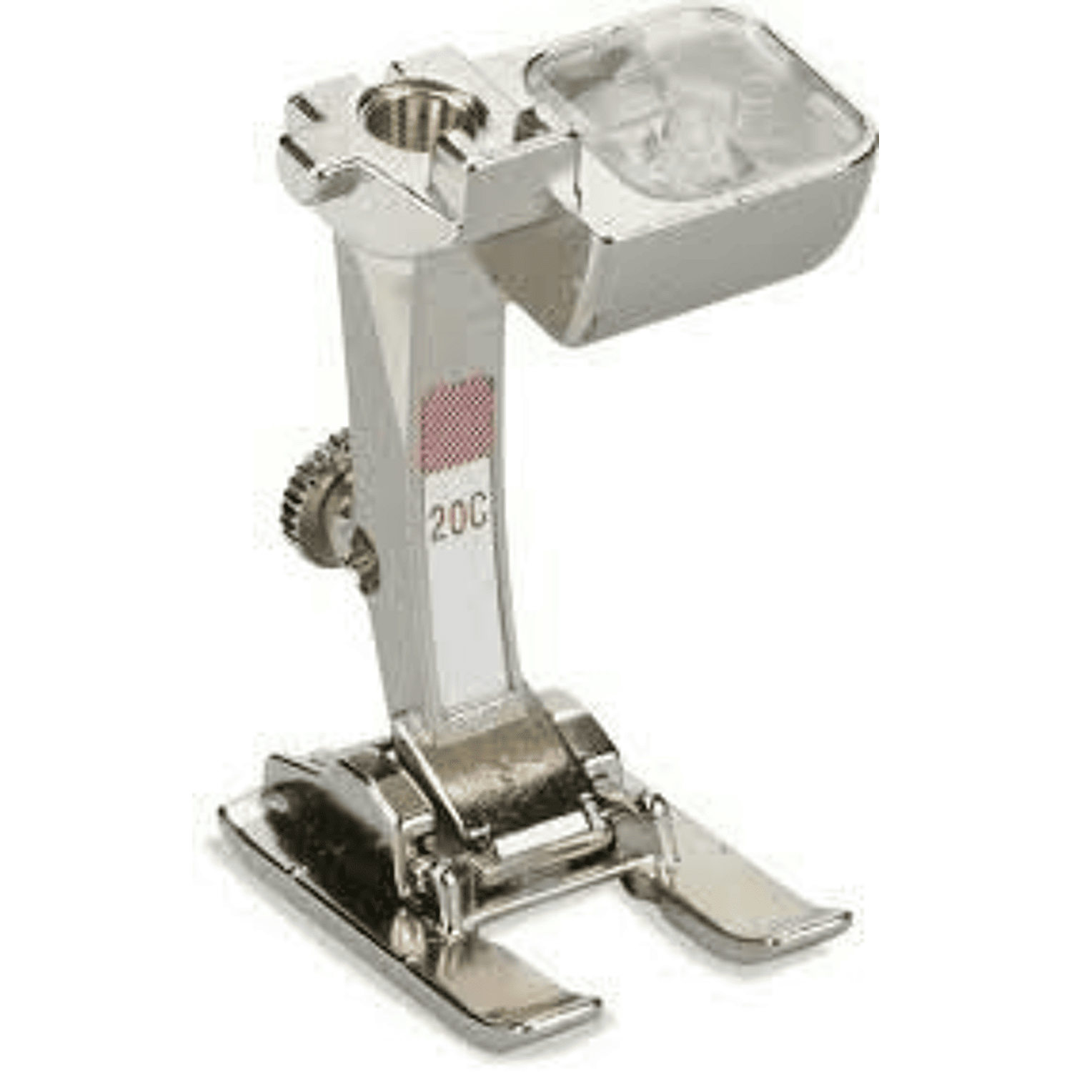 De open borduurvoet #20C is een specialist voor borduren met de naaimachine. Hiermee kunt u naast mooi Richelieu-borduurwerk en ronde stiksels maken, ook lijnen en patronen volgen. Door zijn trapeziumvormige uitsparing heeft u vrij zicht op het naaibereik. De grote uitsparing aan de onderkant van de voet zorgt daarbij voor perfect materiaaltransport bij dichte steekpatronen. Voor stroeve stoffen is de open borduurvoet ook met een speciale glijzool (#56) verkrijgbaar. Daarnaast is de open borduurvoet #20C op grond van zijn opbouw ideaal voor het aannaaien van banden en het vervaardigen van mooie applicaties.
