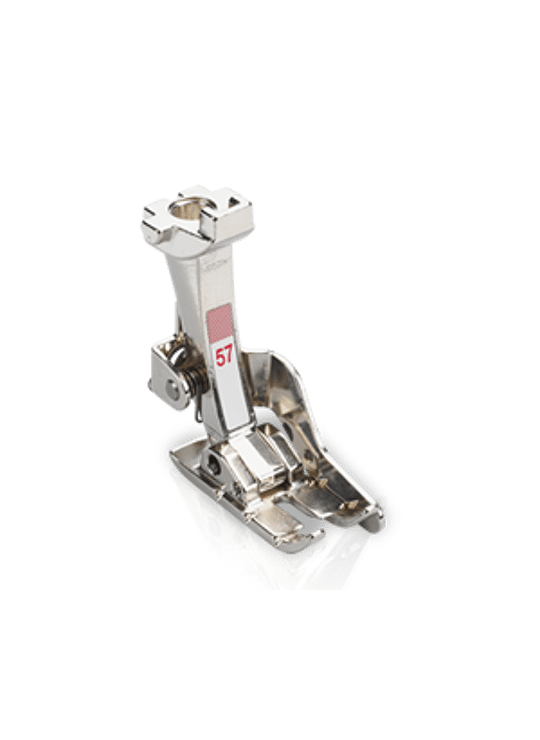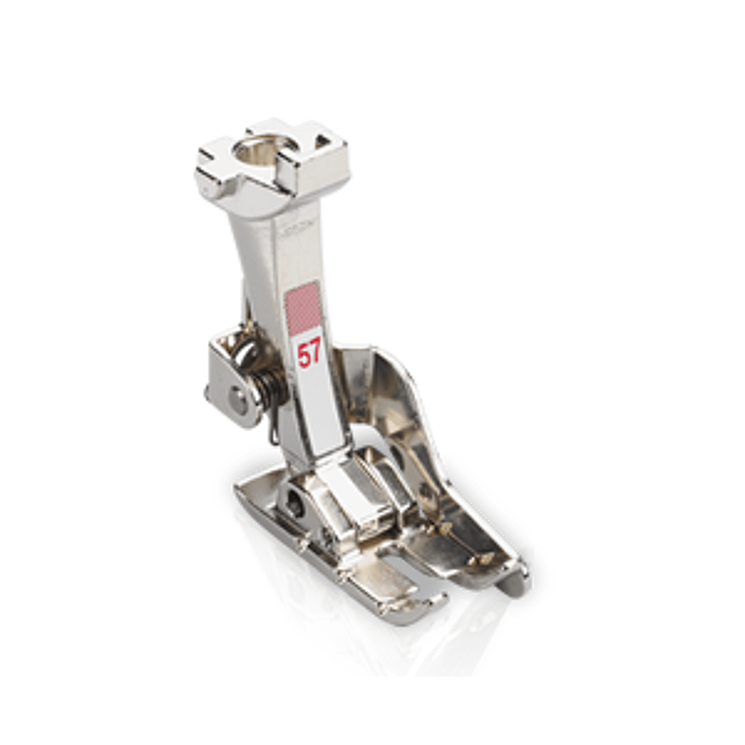 De Patchworkvoet met geleider #57 onderscheidt zich van de patchworkvoet #37 door de zijdelings gemonteerde geleider. Daardoor is de voet ook uiterst geschikt voor patchworken met 6 mm (1/4 inch) of 3 mm (1/8 inch) naden. Ook bij andere precisie-naaitechnieken waarvoor een exact rechte naad nodig is, profiteert u van de Patchworkvoet met geleider #57. De aanslag wordt daarbij direct op de stofkant of de naailijn geplaatst. Daarbij worden bij het naaien rechte steken en lijnen gecreëerd.