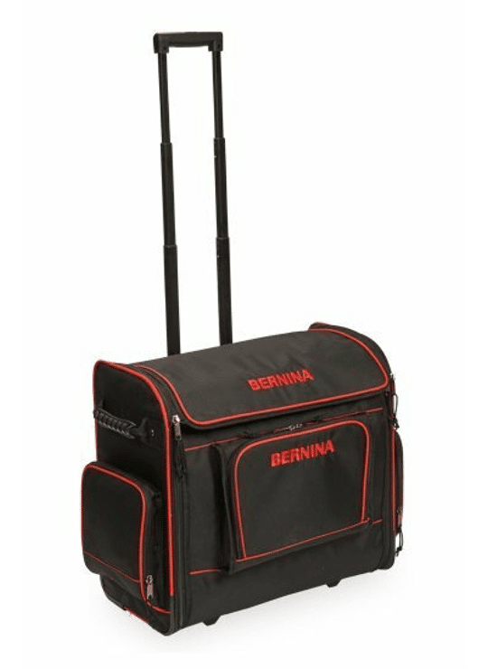 De BERNINA L Trolley is erg stevig en perfect voor op reis. Diverse binnen- en buitenvakken bieden plaats aan al uw accessoires. Dankzij de stevige wielen en het uittrekbare telescopische handvat neemt u zowel uw naaimachine als de bijbehorende borduurmodule heel gemakkelijk mee als u op pad gaat. Eenvoudig op te tillen bij het in- en uitpakken dankzij de handgrepen aan de zijkant. Drie extra insteekstukken met klittenbandbevestiging geven steun bij het vervoer van kleinere BERNINA naaimachines.