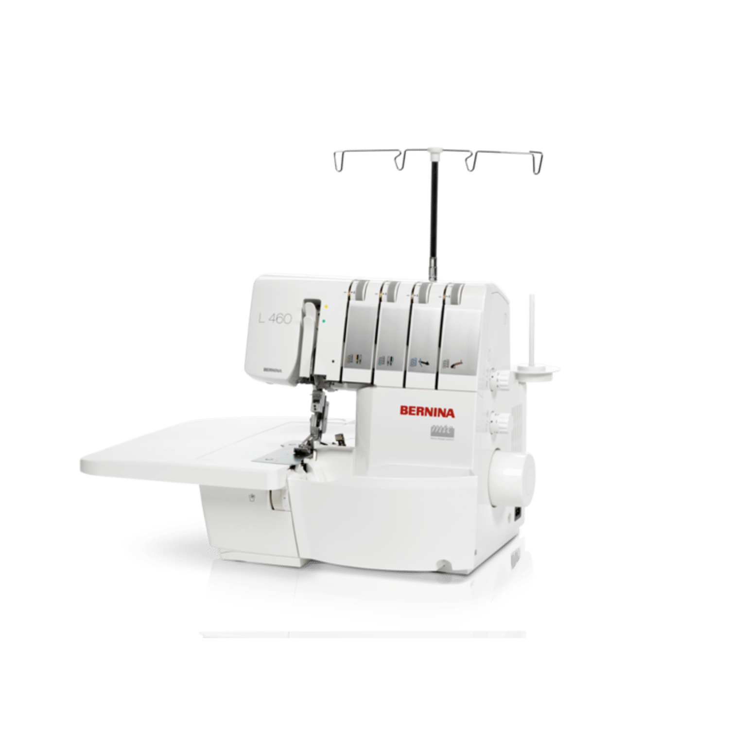 De BERNINA L 460 is een snelle en flexibele overlockmachine waarmee je in één stap kunt naaien, snijden en afwerken. Dankzij functies zoals differentieel transport, MTC-draadcontrole en een geïntegreerde rolzoomhendel werk je vlot en krijg je mooie, gelijkmatige naden op zowel rekbare als geweven stoffen.