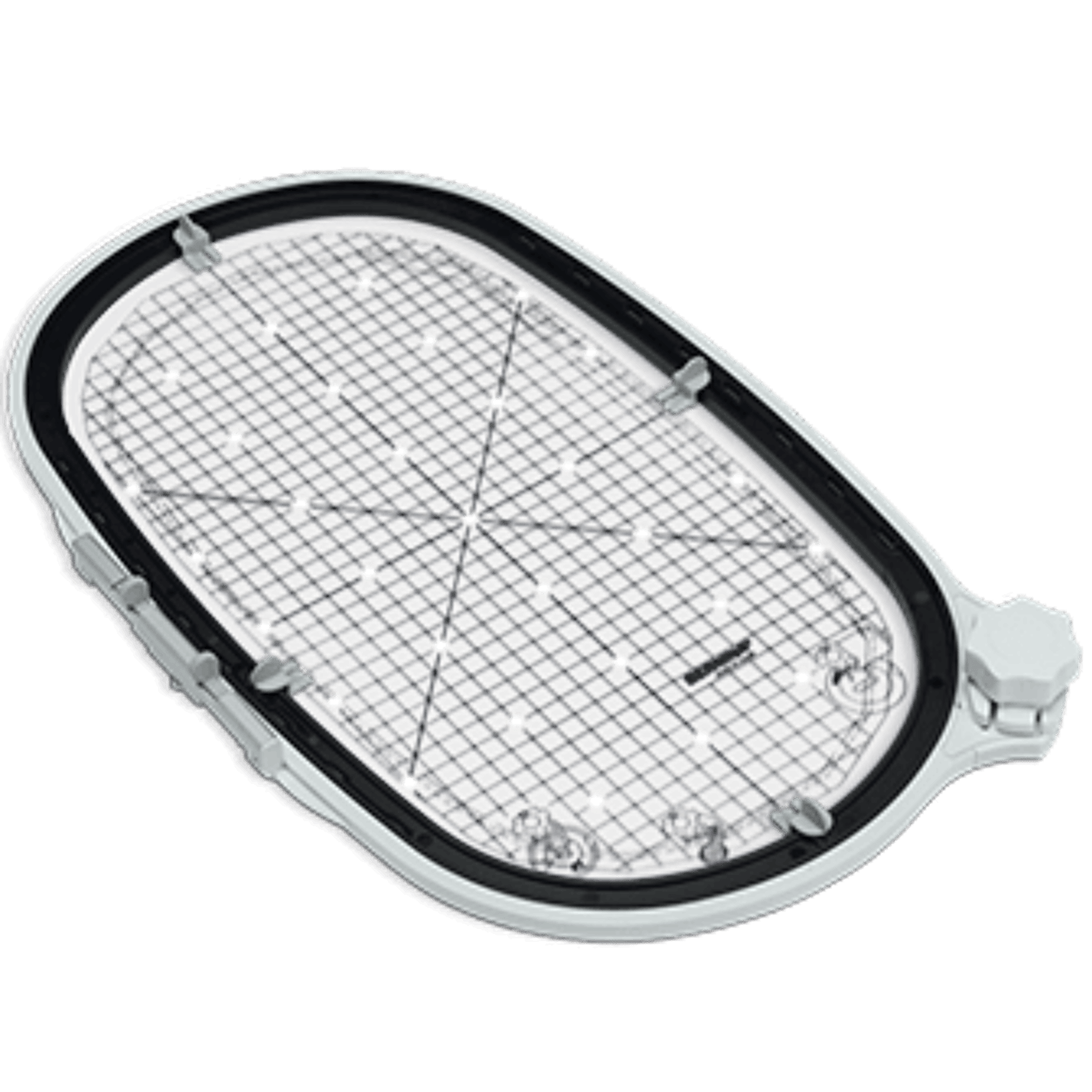 Met het borduurraam maxi (max. borduurvlak 210 x 400 mm) kunt u speciale en extra grote borduurmotieven, combinaties van motieven en sierranden maken. Het heeft een ergonomische draaisluiting met ratelmechanisme, om het materiaal gemakkelijk te kunnen spannen en losmaken. Hierdoor wordt het borduurontwerp optimaal in het borduurraam opgespannen. Door het meegeleverde sjabloon kan de stof nauwkeurig worden uitgelijnd.
