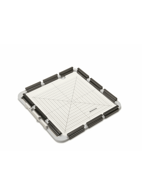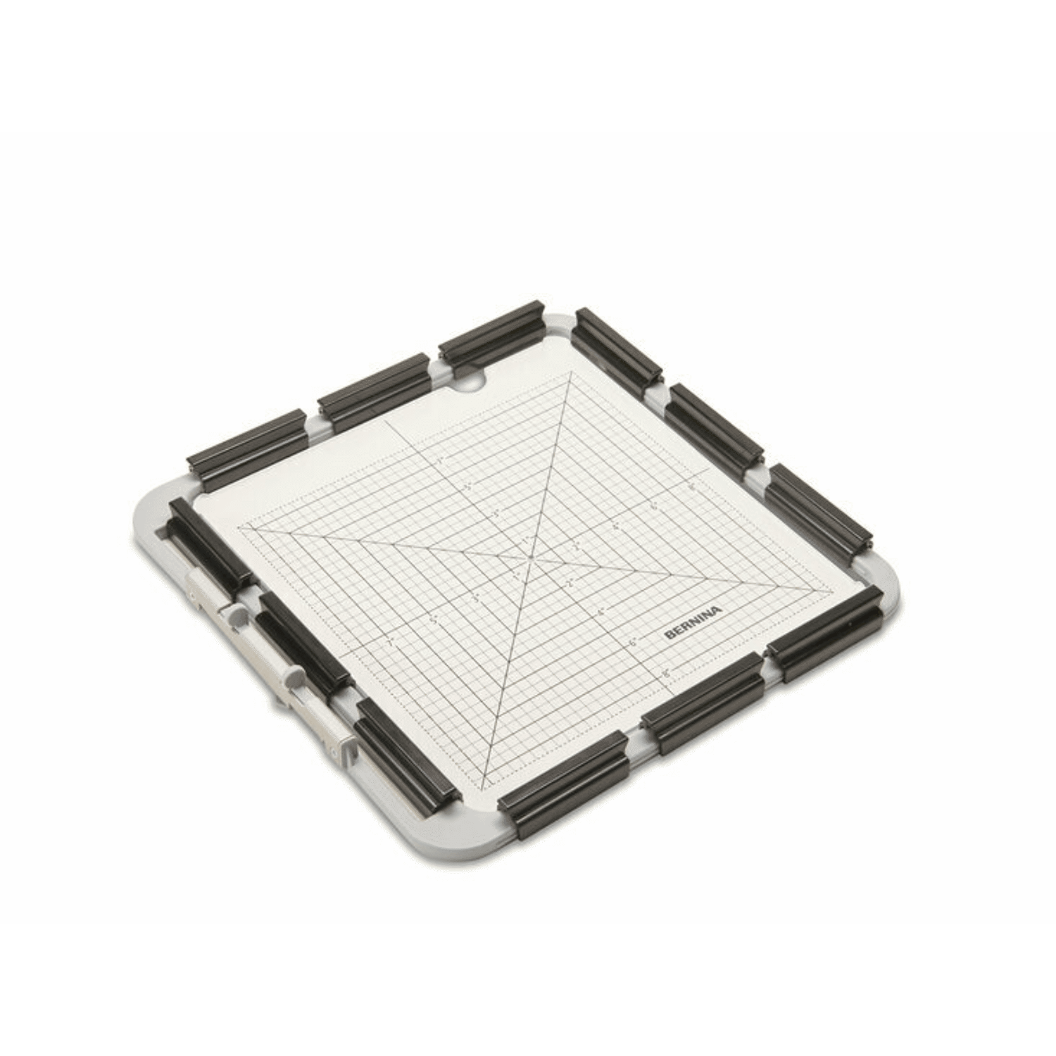 Het medium klem-borduurraam van BERNINA is het ideale borduurraam voor quilters. De vierkante vorm is perfect geschikt voor de vierkante ontwerpen die gewoonlijk voor quilten worden gebruikt. Dit bespaart zowel borduurversteviging als stof tegenover het gebruik van ovale borduurramen.