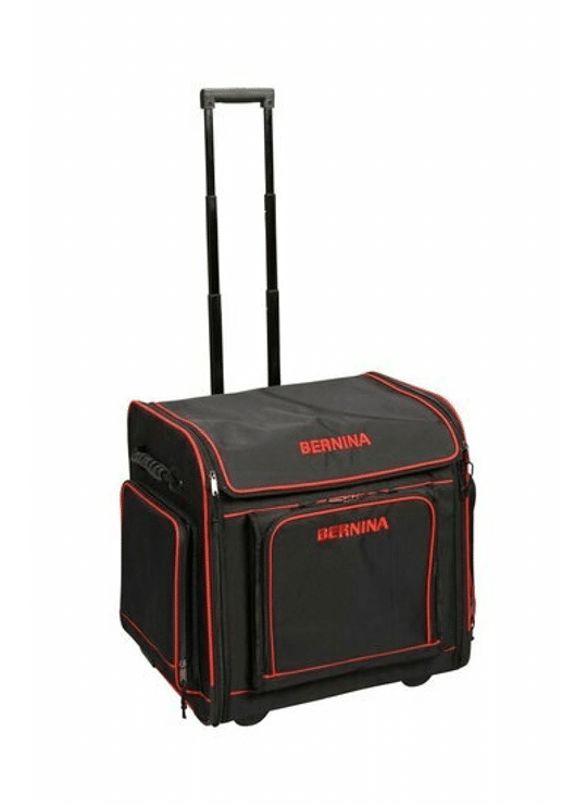 De praktische trolley is zeer stevig en perfect geschikt voor onderweg. De lange rits opent de voorkant voor comfortabel in- en uitladen van de overlock. De binnen- en buitenvakken bieden veel ruimte voor accessoires. Dankzij de robuuste wielen en de uitschuifbare telescoopgreep kan de trolley in zijn geheel comfortabel worden voortgetrokken. De handgrepen aan de zijkant zorgen voor comfortabel in- en uitladen van de trolley. Ook beschermt een apart omhulsel de accessoireboxen.