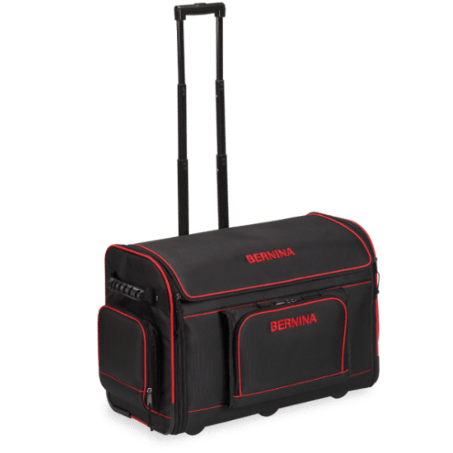 De Trolley voor de BERNINA 7- en 8-serie is stabiel en licht. De gewatteerde bekleding en de hoogwaardige stof aan de buitenkant beschermen uw naaimachine tegen weer en wind. Door de grote openingen kan de machine eenvoudig van de zijkant of van boven in de trolley worden opgeborgen. In de vele vakken aan de binnen- en buitenkant heeft u meer dan genoeg plaats voor alle accessoires. De sterke wielen, de draaggrepen aan de zijkant en de uittrekbare telescoopgreep zorgen bovendien voor veel stabiliteit tijdens het gebruik.
