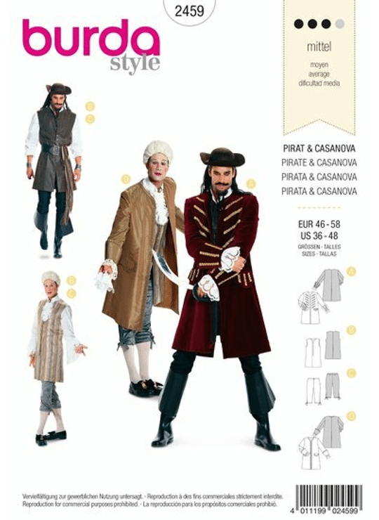 - Product: Burda Patroon 2459 - Piraat en Casanova
