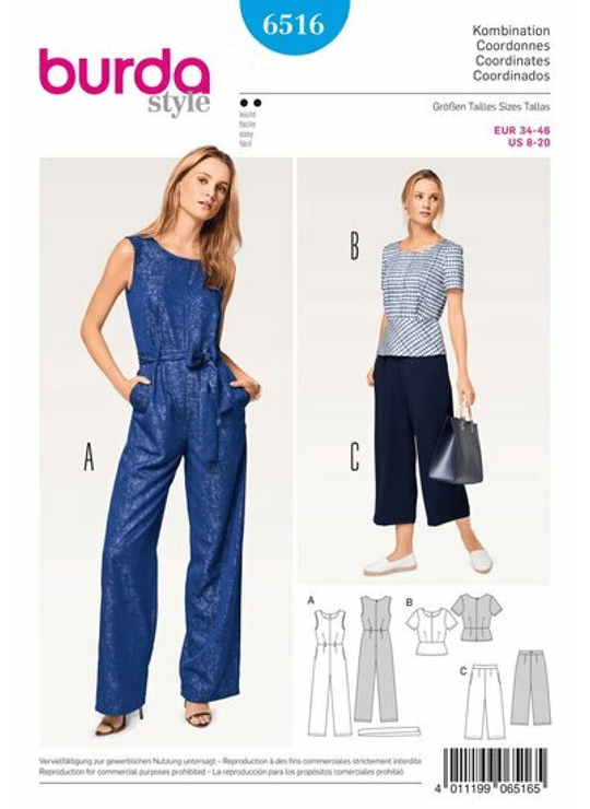 - Product: Burda Patroon 6516 - Jumpsuit, T-shirt en Broek
