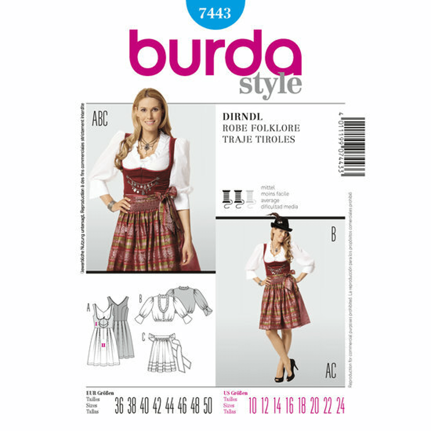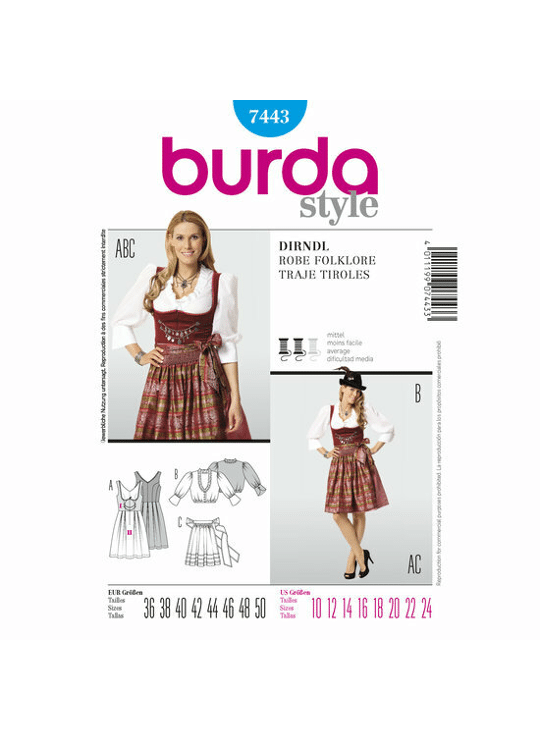 - Product: Burda Patroon 7443 - Tiroler Jurk