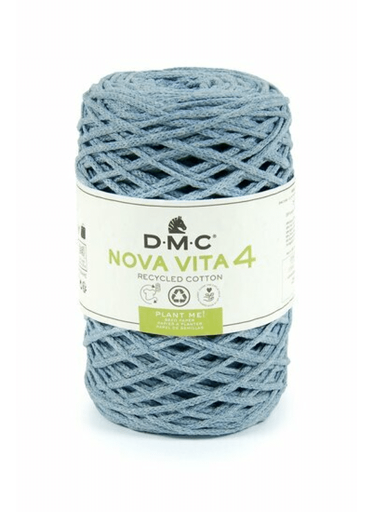 Het garen Nova Vita 4 van DMC wordt gemaakt van textielafval dat gemalen, geverfd en opnieuw wordt gesponnen. Als je de wikkel (zaadpapier) in de grond steekt in plaats van die weg te gooien dan zullen er plantjes groeien. Het koordgaren heeft een doorsnee van 4 mm en bestaat uit een geweven omhulsel rond een dunnere draad die het zijn stevigheid geeft. Het is bij uitstek geschikt voor het haken, breien of macrameeën van woon- en modeaccessoires, zoals tassen, placemats, kussens, lampenkappen of plantenhangers. Nova Vita 4 is samengesteld uit 80% gerecycled katoen en 20% polyester en heeft het OEKO-TEX® Standard 100 keurmerk. Wasbaar tot 30 graden. De aanbevolen naalddikte voor breien is 5.00mm en voor haken 4.00mm. Een bol Nova Vita 4 weegt 250 gram en heeft een looplengte van 200 meter.
