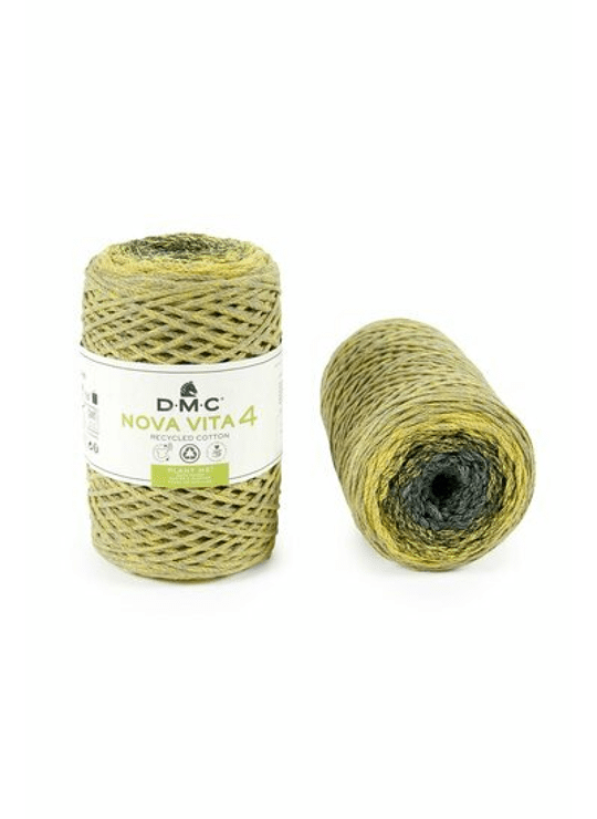 Het garen Nova Vita 4 van DMC wordt gemaakt van textielafval dat gemalen, geverfd en opnieuw wordt gesponnen. Als je de wikkel (zaadpapier) in de grond steekt in plaats van die weg te gooien dan zullen er plantjes groeien. Het koordgaren heeft een doorsnee van 4 mm en bestaat uit een geweven omhulsel rond een dunnere draad die het zijn stevigheid geeft. Het is bij uitstek geschikt voor het haken, breien of macrameeën van woon- en modeaccessoires, zoals tassen, placemats, kussens, lampenkappen of plantenhangers. Nova Vita 4 is samengesteld uit 80% gerecycled katoen en 20% polyester en heeft het OEKO-TEX® Standard 100 keurmerk. Wasbaar tot 30 graden. De aanbevolen naalddikte voor breien is 5.00mm en voor haken 4.00mm. Een bol Nova Vita 4 weegt 250 gram en heeft een looplengte van 200 meter.