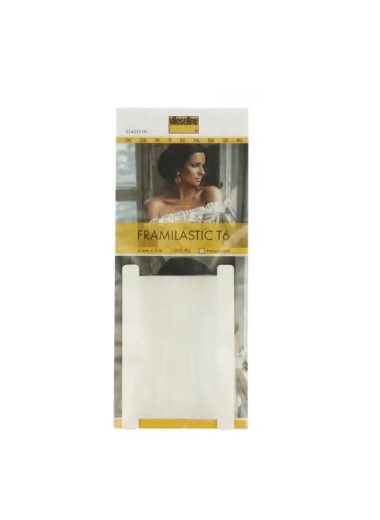 Framilastic T6 is een transparant, elastisch verstevigingsband dat ideaal is voor het stabiliseren van naden in rekbare stoffen. Het band voorkomt uitrekken en vervormen, terwijl de stof soepel en elastisch blijft. Perfect voor kledingstukken uit tricot en jersey, lingerie en badmode.