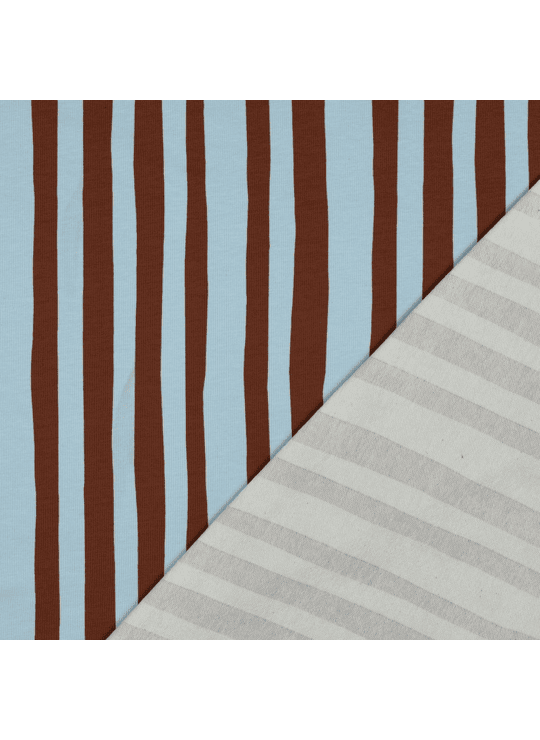 - Product: French Terry - Stripes - Lichtblauw-Bruin