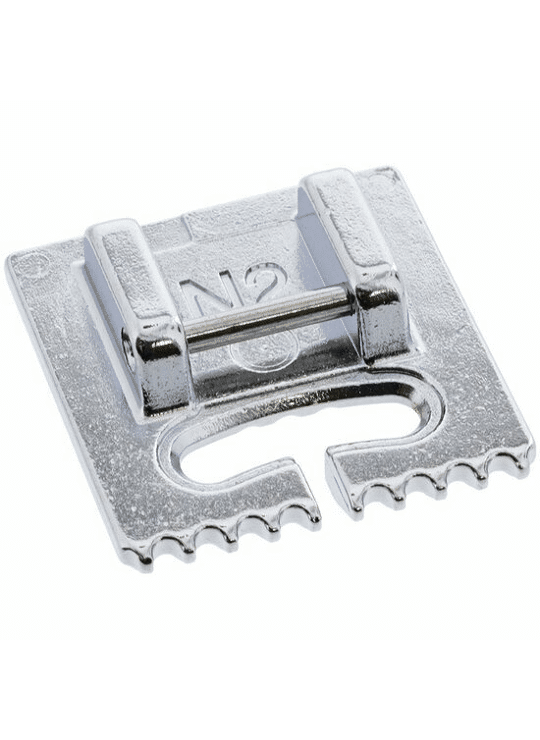De biezenvoet wordt gebruikt met een tweelingnaald van 2 mm om meerdere rijen biezen te maken. De groeven aan de onderkant van de voet maken het gemakkelijk om meerdere rijen parallel en gelijkmatig van elkaar te naaien. Deze voet is geschikt voor alle Janome modellen met een plat liggende grijper en een maximale steekbreedte van 9 mm. Dus geschikt voor alle naaimachines uit categoriën N, O en P.