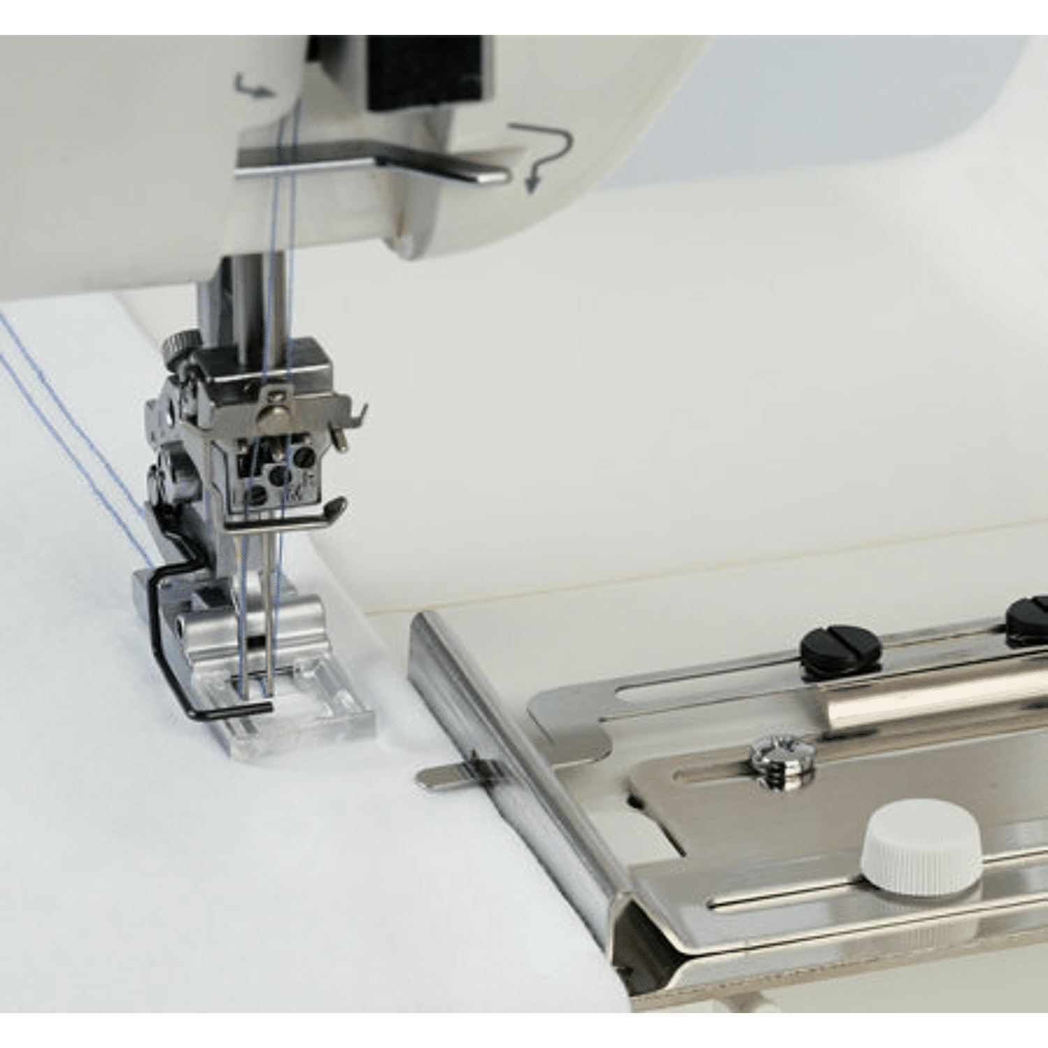 Maakt het gemakkelijk om zomen, manchetten of andere afgewerkte randen te vormen. De zoomgeleider vouwt de stof met een constante breedte, waardoor het gemakkelijk is om zomen, manchetten of andere afgewerkte randen te vormen. Dit apparaat maakt zomen van 1,5 tot 4,5 cm breed.