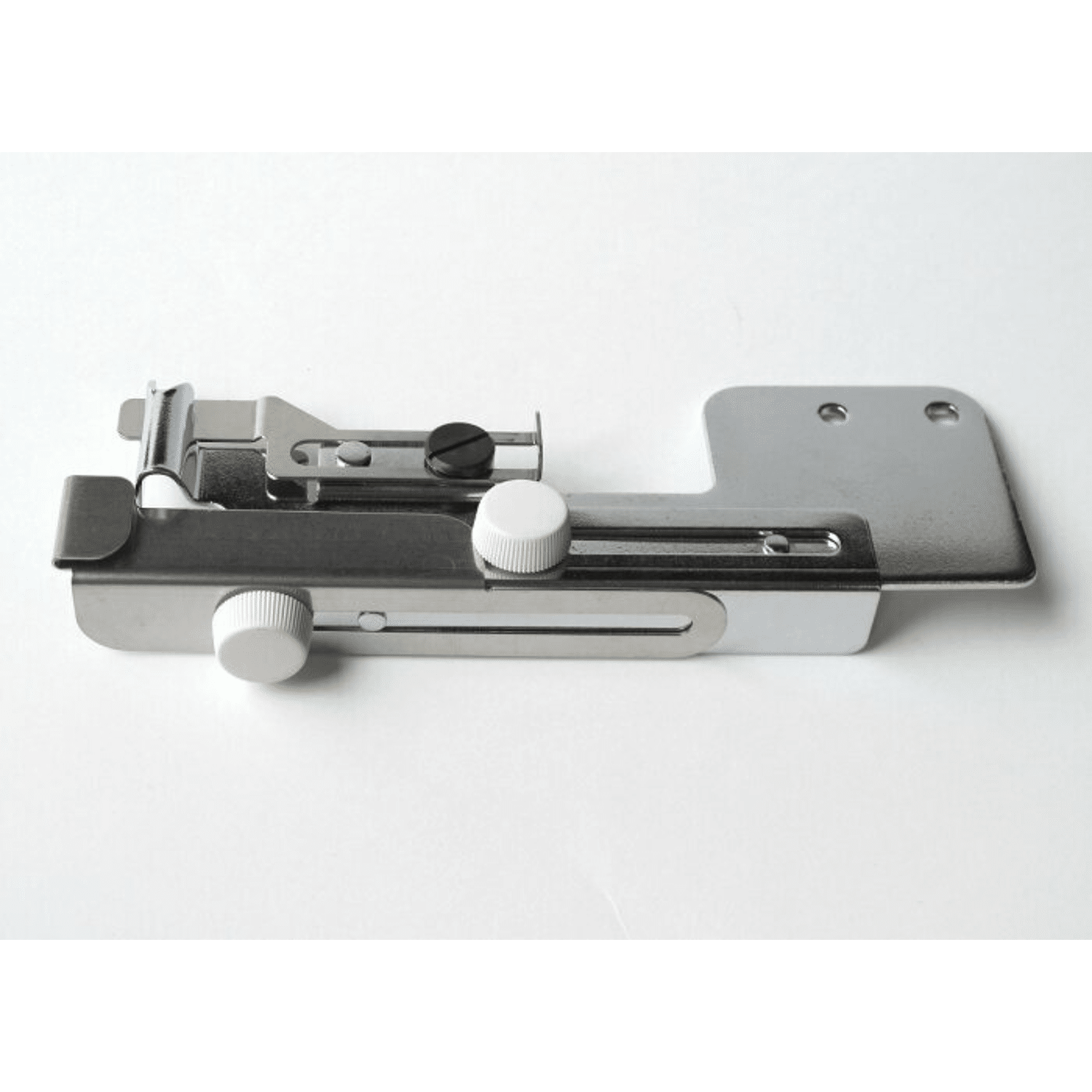 Maakt het gemakkelijk om zomen, manchetten of andere afgewerkte randen te vormen. De zoomgeleider vouwt de stof met een constante breedte, waardoor het gemakkelijk is om zomen, manchetten of andere afgewerkte randen te vormen. Dit apparaat maakt zomen van 1,5 tot 4,5 cm breed.