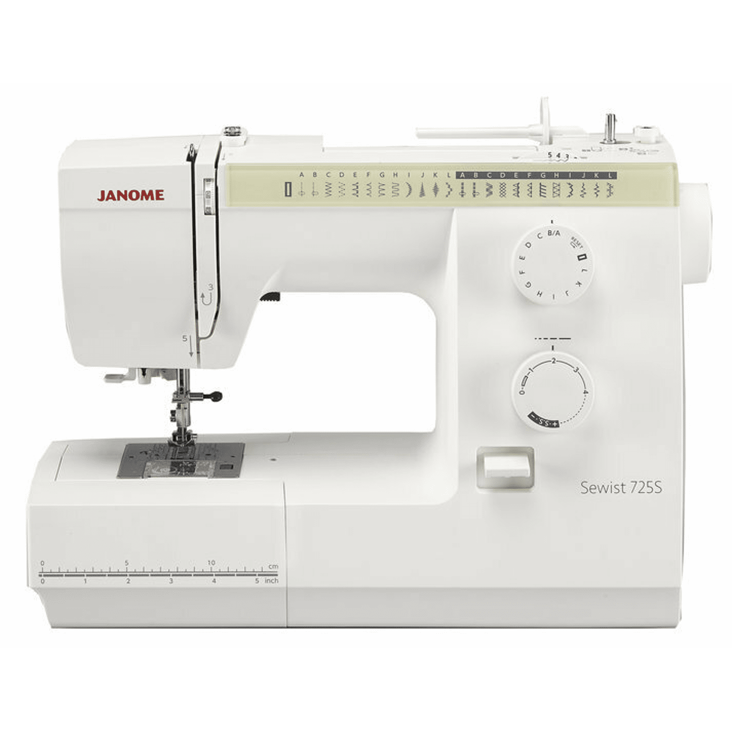 De Janome Sewist 725S is een gebruiksvriendelijke mechanische naaimachine, gebaseerd op het 721-model, met extra steken en een automatische eenstapsknoopsgatfunctie. Je plaatst de knoop in de knoopsgatvoet en de machine bepaalt automatisch de juiste knoopsgatlengte, zodat je knoopsgaten mooi en gelijkmatig worden.