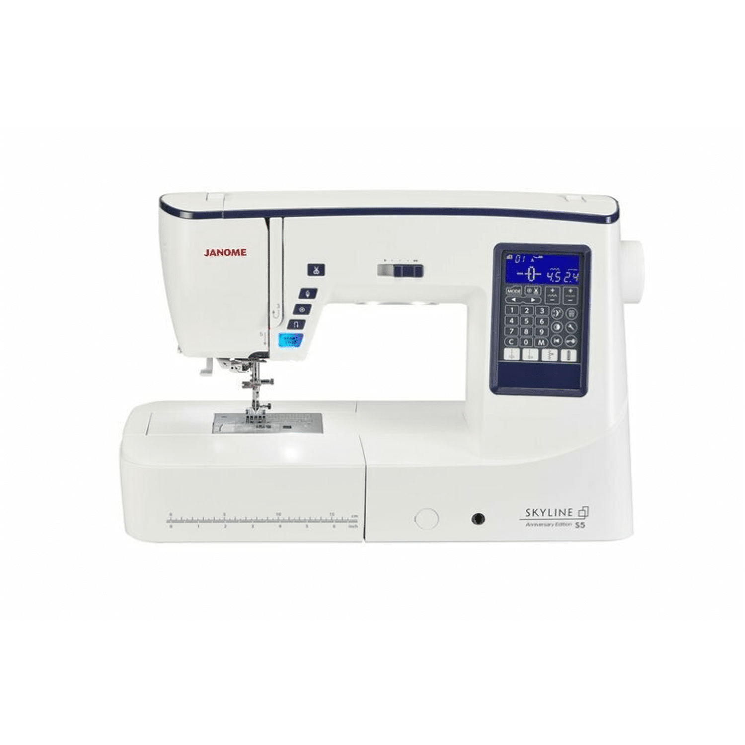 De Janome Skyline S5 Anniversary Edition is een naaimachine van Janome. De Skyline S5 is een elektronische naaimachine die zich richt op comfort, precisie en gebruiksgemak. Dankzij het stabiele ontwerp, de overzichtelijke bediening en.