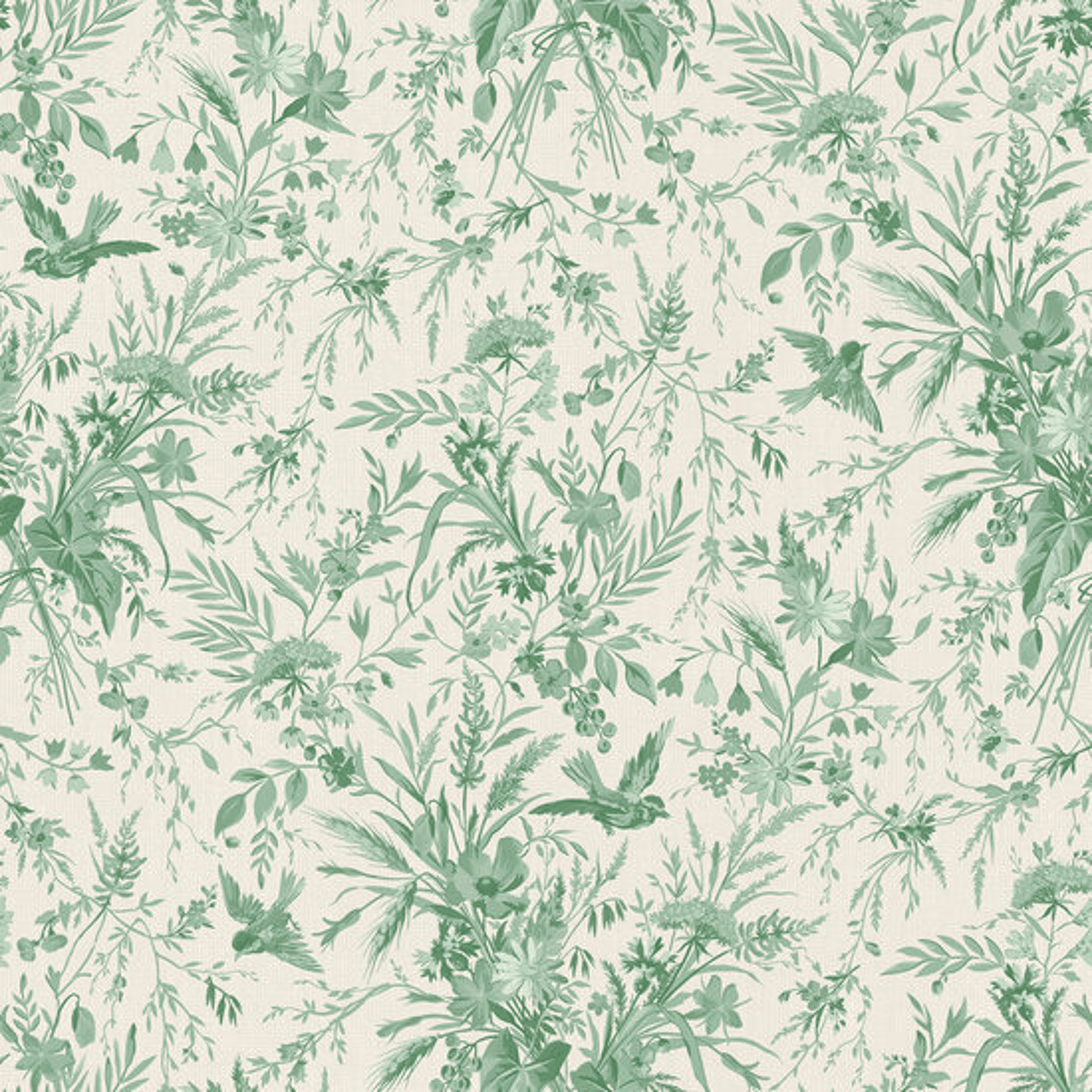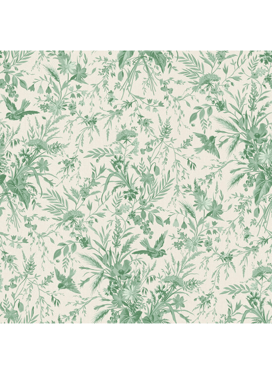 - Product: Katoen - Green Flowers and Birds - Groen