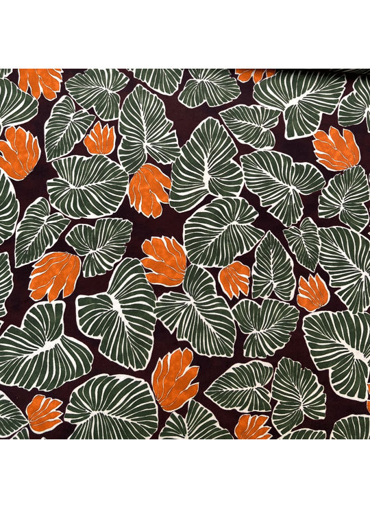 Katoen - Leaves with Orange Flowers - Bruin