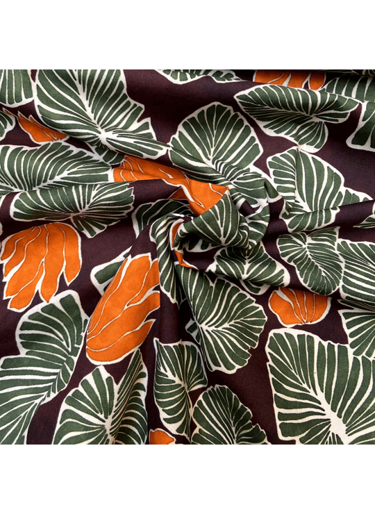 - Product: Katoen - Leaves with Orange Flowers - Bruin