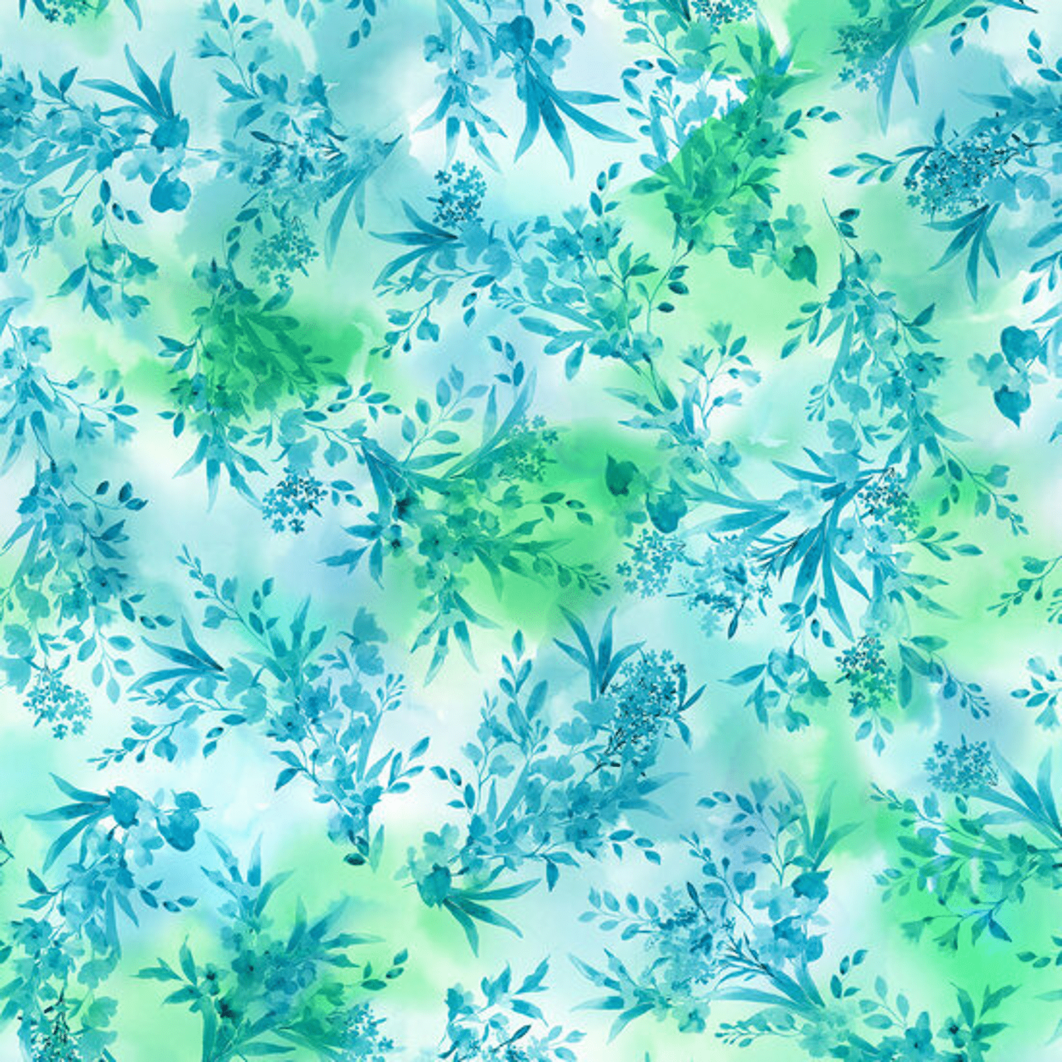 - Product: Katoen - Meandering Flowers - Blauw-Groen