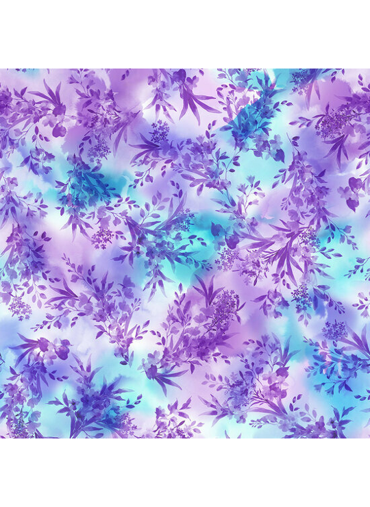 - Product: Katoen - Meandering Flowers - Blauw-Paars