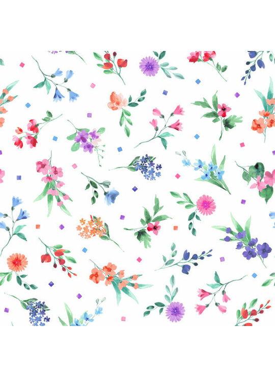 - Product: Katoen - Multi Tossed Flowers - Wit