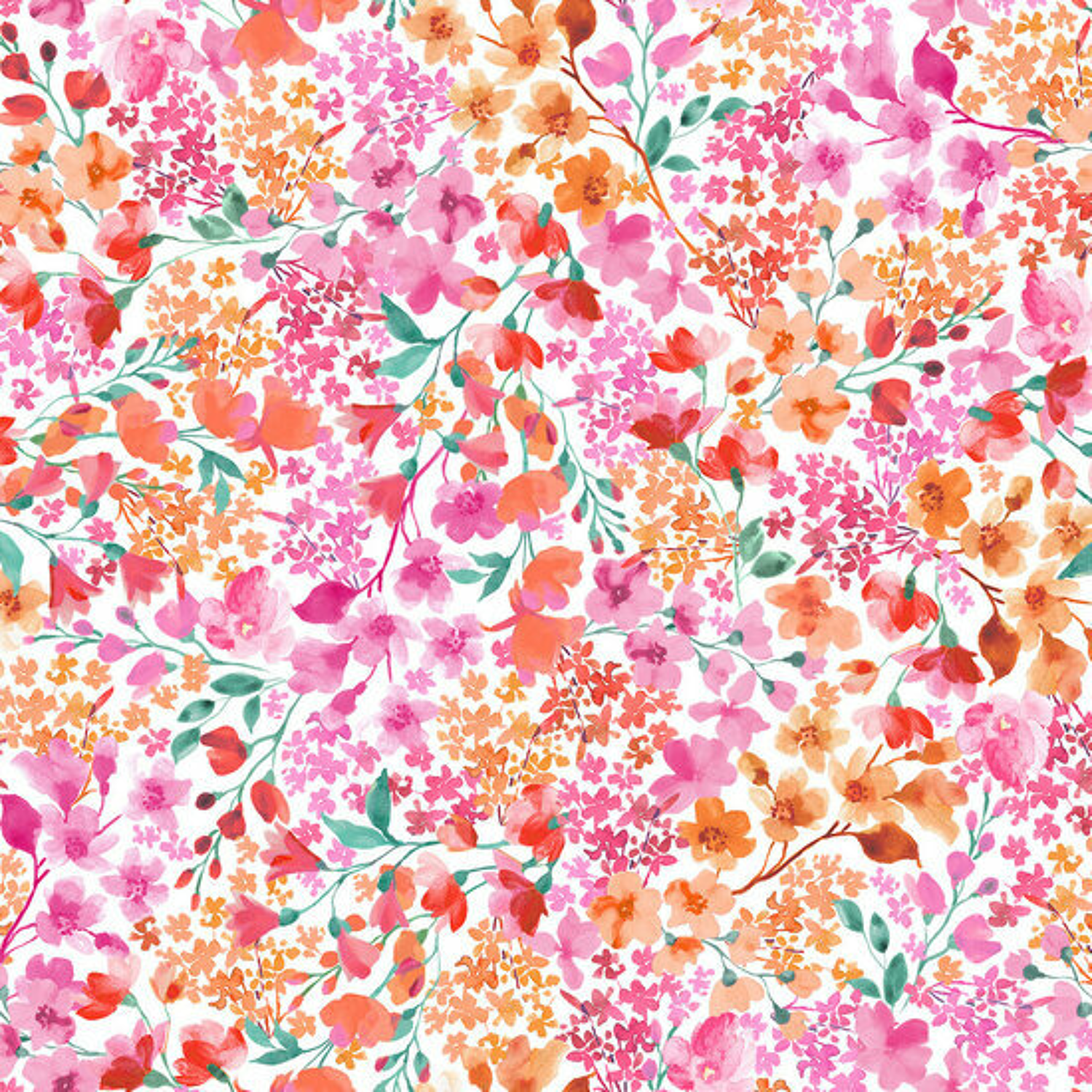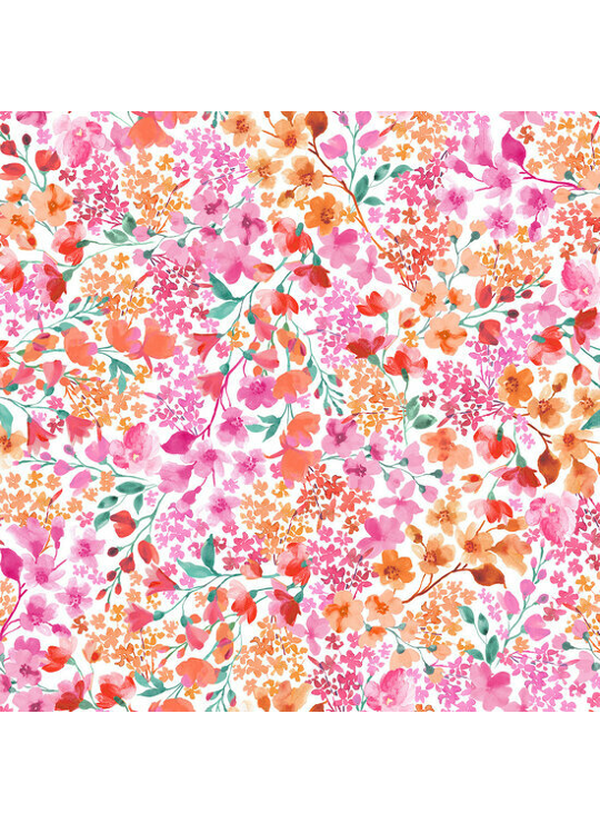 - Product: Katoen - Pink-Orange Packed Flowers - Wit