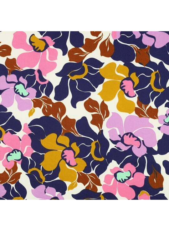- Product: Katoen Satijn - Pink and Blue Flowers - Wit