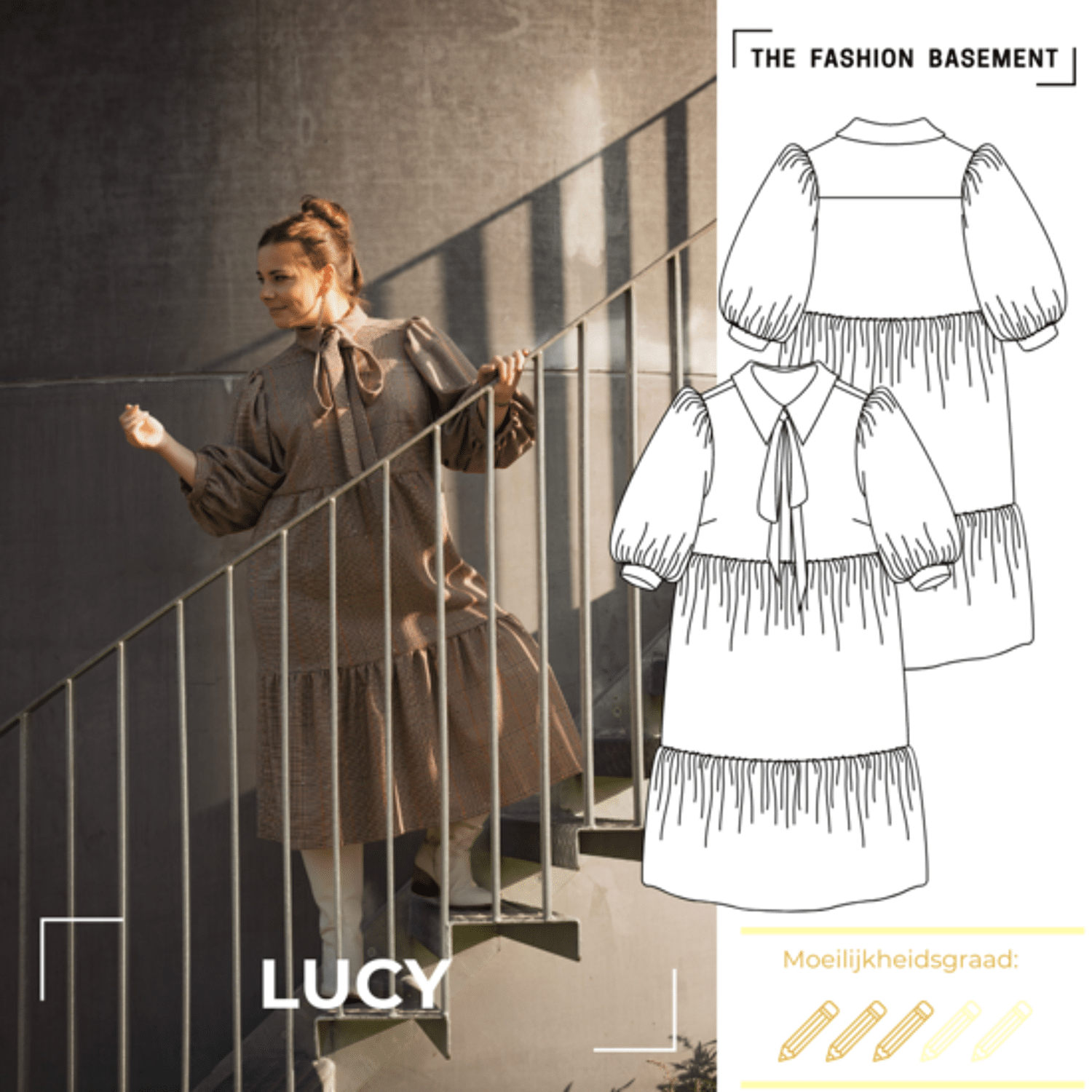 Lucy is een jurk met statementmouwen en striklint in de kraag. Het is een heerlijk comfortabel kledingstuk met designerlook. De jurk komt met een grote ballonmouw, blinde knoopsluiting, hemdsblousekraag met striklint en strokenrok. De Lucy jurk maak je uit een geweven stof van gemiddelde zwaarte. Dit kan met of zonder klein percentage elastaan.
