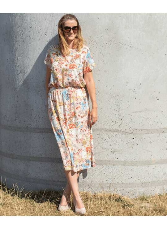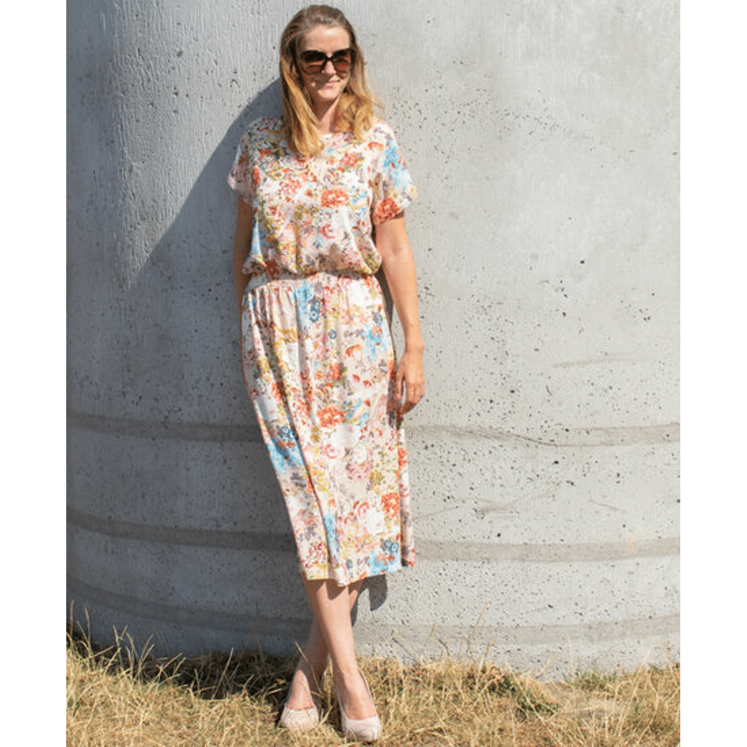 De Lux jurk voor dames is een comfortabele en stijlvolle jurk voor iedereen. Maak een feestelijke maxi jurk of ga voor boho chic. Grote bloemenprints maken deze jurk tot een ware eyecatcher. Ook de korte versie is een pittig jurkje waar je alle kanten mee uitkan. In de winter voeg je makkelijk lange mouwen toe zodat de jurk geschikt is voor elk seizoen en voor een heel aanbod stoffen. De snit is namelijk zo aangepast dat je geweven of rekbare stoffen kan gebruiken. Het smockdetail accentueert je taille of creëert er optisch eentje.