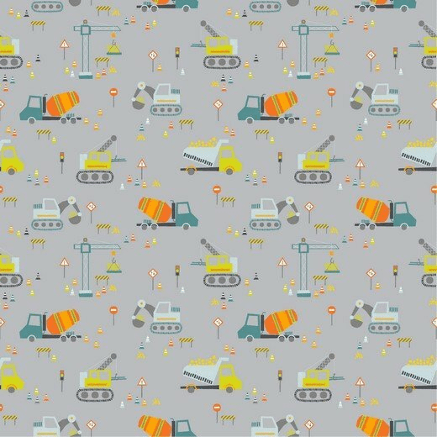Poplin - Construction Vehicles - Lichtgrijs
