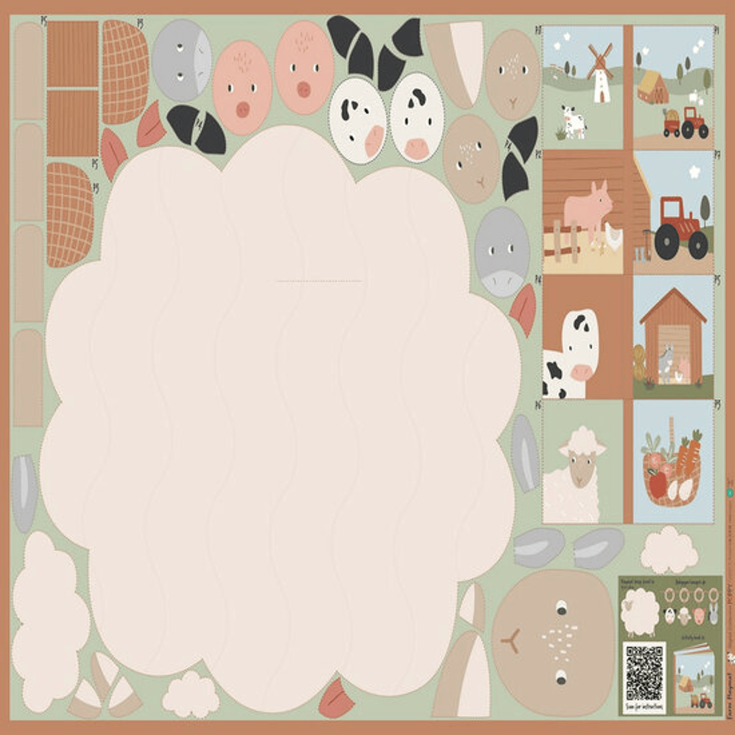 - Product: Poplin - Paneel Playmat Boerderij - Multicolor