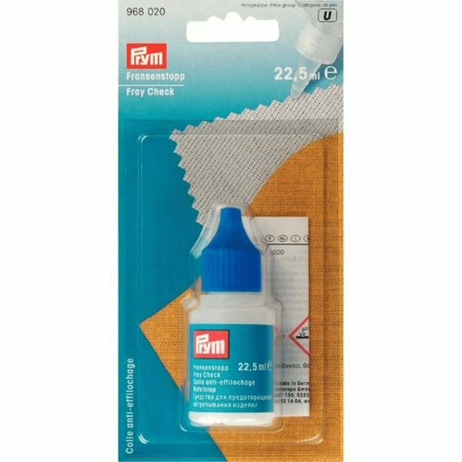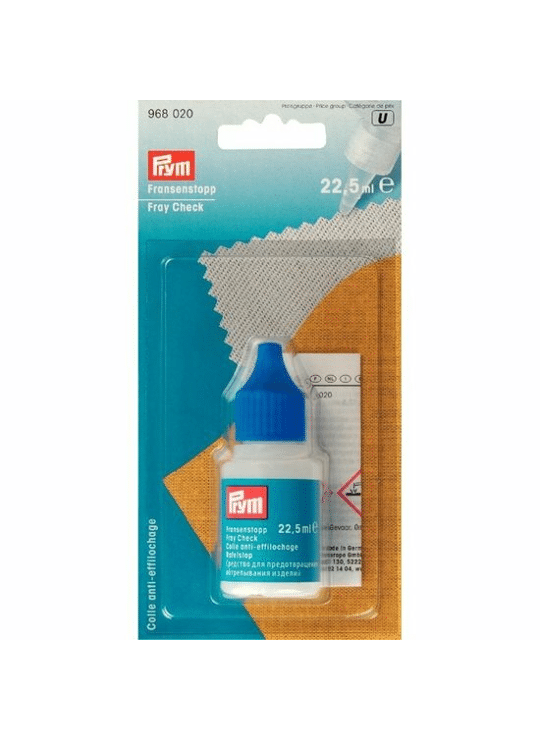 Prym Rafelstop is simpelweg revolutionair. Rafels komen niet meer voor met deze vloeistof! Je kunt de rafelstop gebruiken om de zoom te versterken, of om stoffen aan elkaar te hechten. Hoe het werkt? Breng de hechtende vloeistof aan op de rand van de stof en laat het opdrogen. Slechts na herhaaldelijk wassen kan het effect van de vloeistof afnemen. Herhaal de behandeling in dit geval zo vaak als nodig. Een verpakking bevat een flesje van 22.5ml.