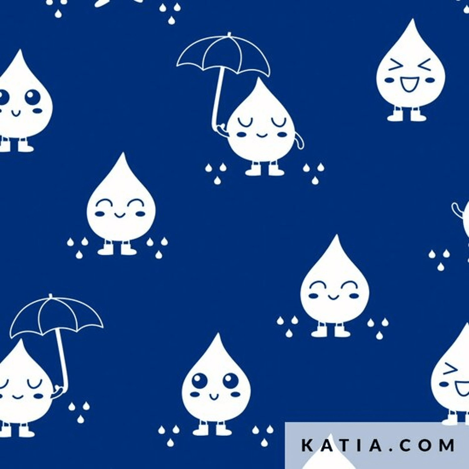 - Product: Regenjasstof - Magic Raindrops - Blauw