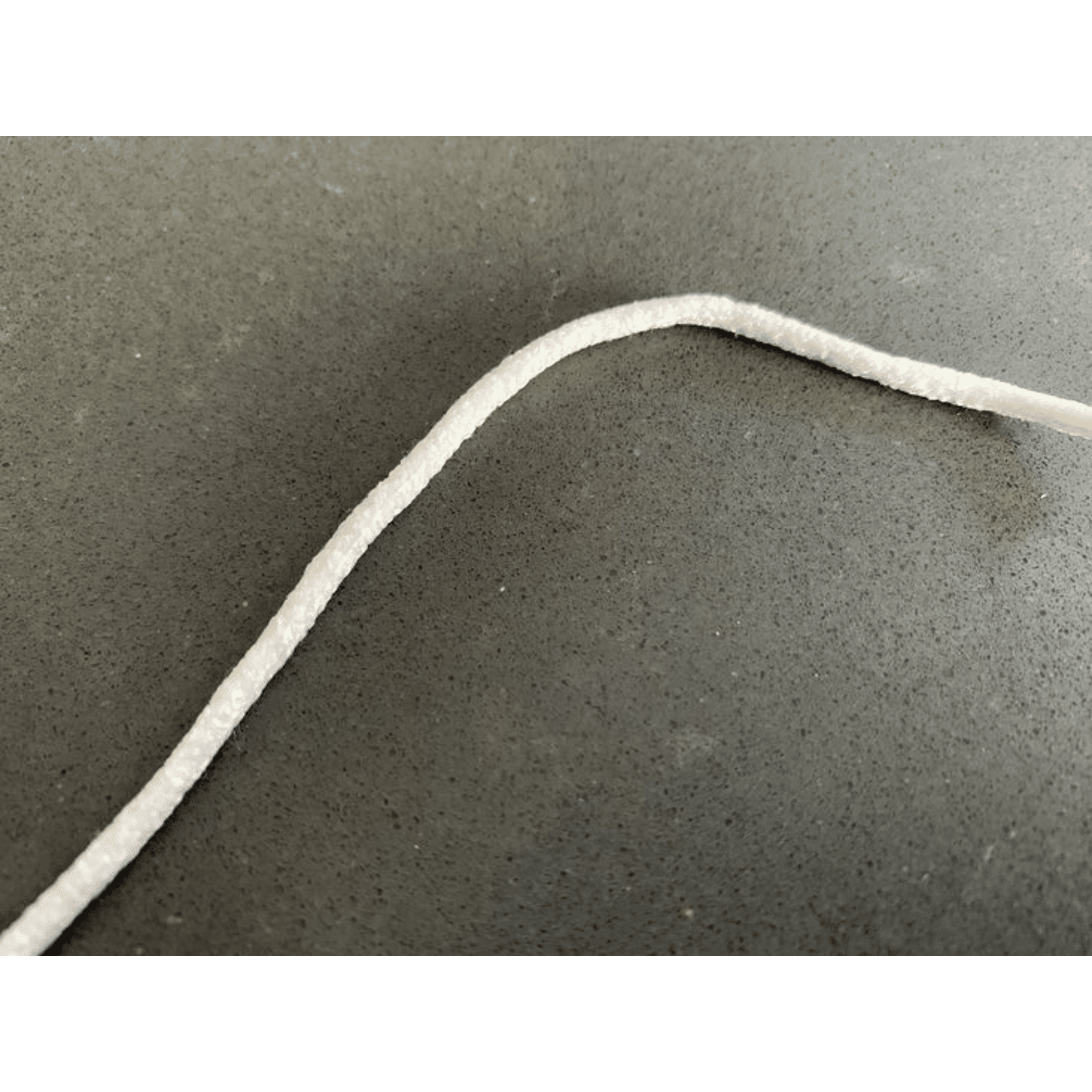 Zachte ronde elastiek van 3 mm breed, kleur wit. Voelt heel zacht aan. Ideaal voor mondmaskers