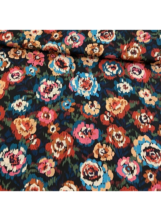 - Product: Satijn - Colourful Flowers - Zwart