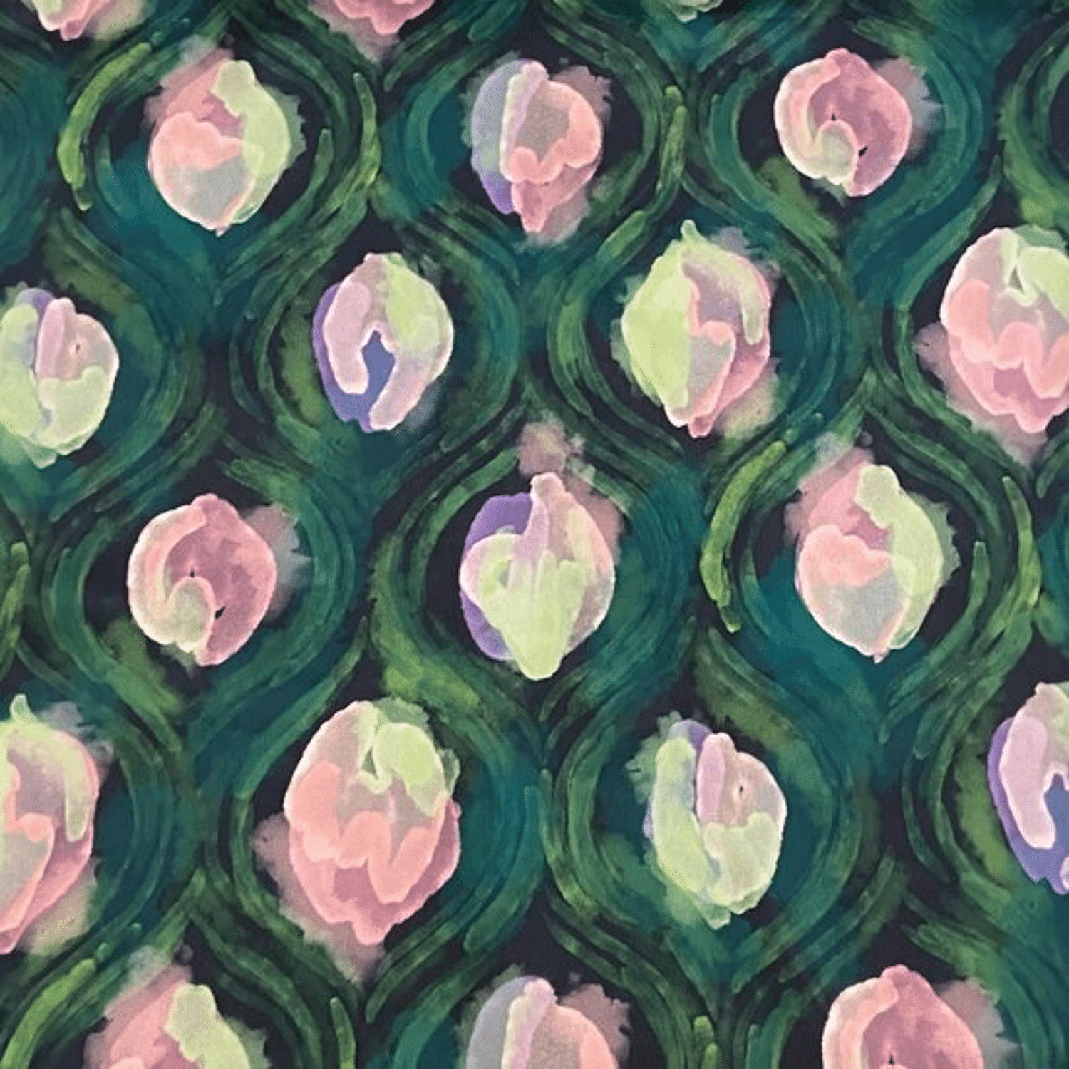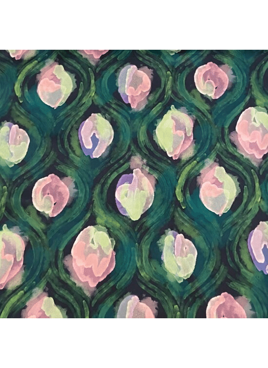 - Product: Satijn - Floating Flowers - Groen