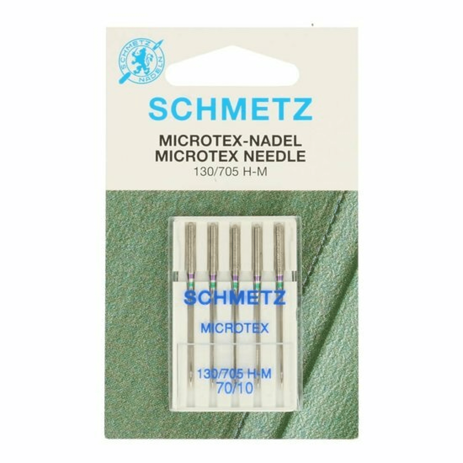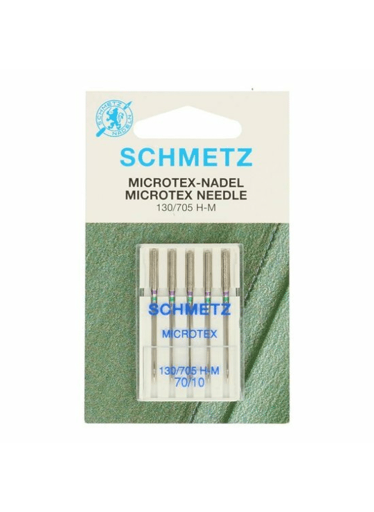 De Microtex naalden van Schmetz zijn machinenaalden met een bijzonder scherpte, slanke punt en kan daardoor gemakkelijk in zeer fijn en strak geweven materiaal doordringen. De naald zorgt voor zeer rechte steken aan de randen van bijvoorbeeld zijde, microvezelstof, gecoate materialen, folie en zelfs kunstleder.