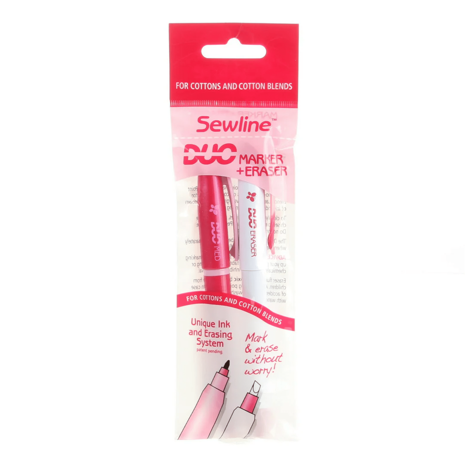 De Sewline Duo Marker & Eraser is een handige 2-in-1 oplossing om stof te markeren en de lijnen nadien weer netjes te verwijderen. De marker zorgt voor duidelijke, zuivere lijnen op stof, terwijl de eraser-pen de markeringen eenvoudig uitwist zonder de stof te beschadigen.