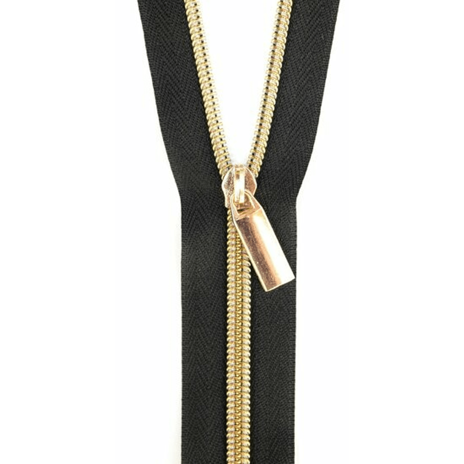 Dit pakket bevat een spiraalrits met een lengte van 2,74 meter (3 yard) en 9 bijbehorende sloten. Deze rits kan eenvoudig op lengte geknipt worden en dan overnaaid worden. De nylon tanden van de rits hebben een metalen look.