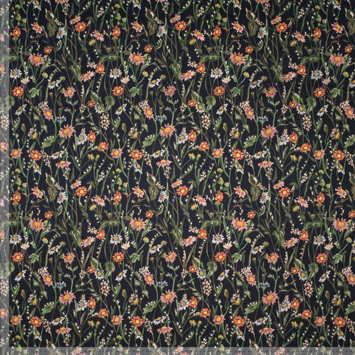 - Product: Stretch Katoen - Bloemenprint - Zwart
