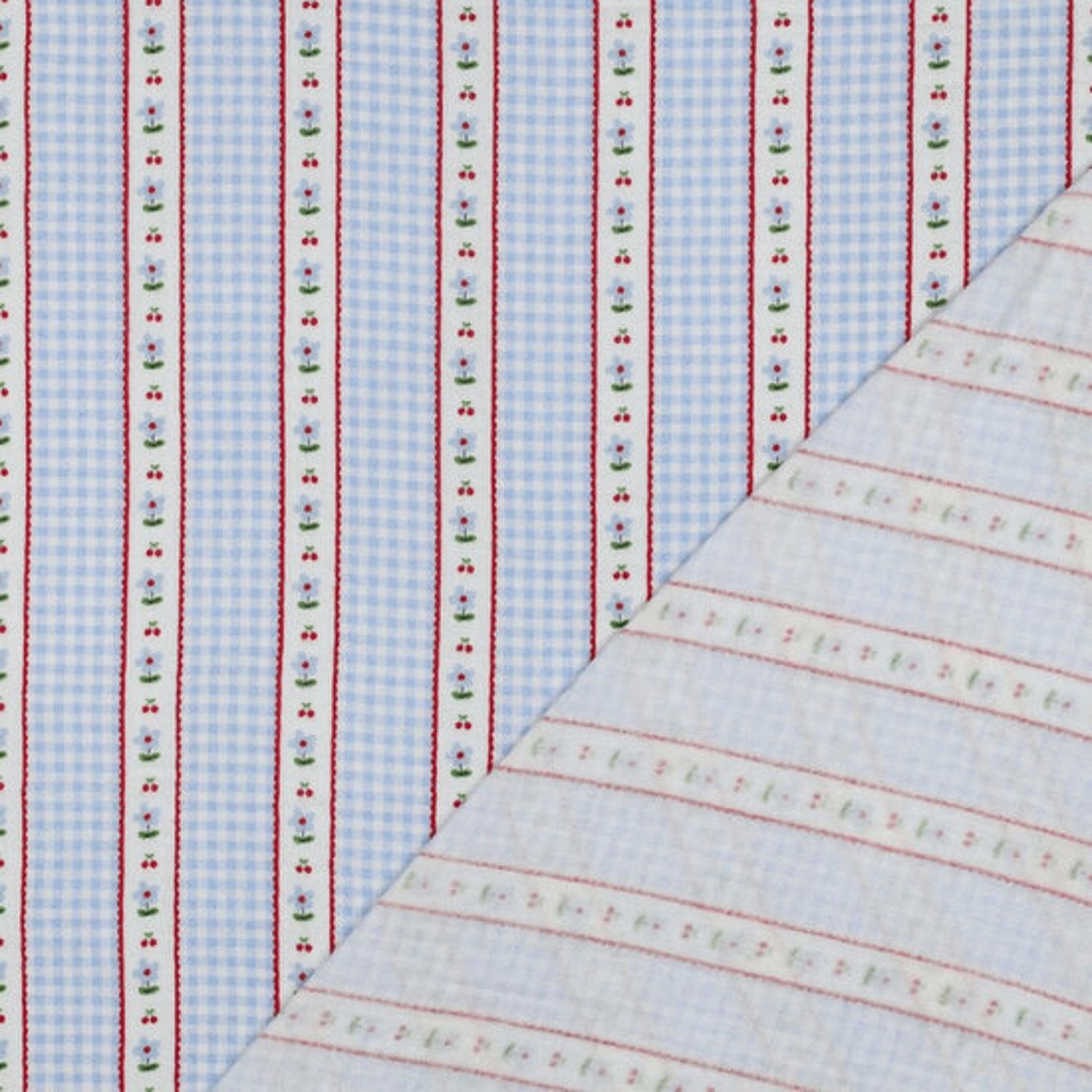 - Product: Tetra - Checks with Cherries and Flowers - Blauw