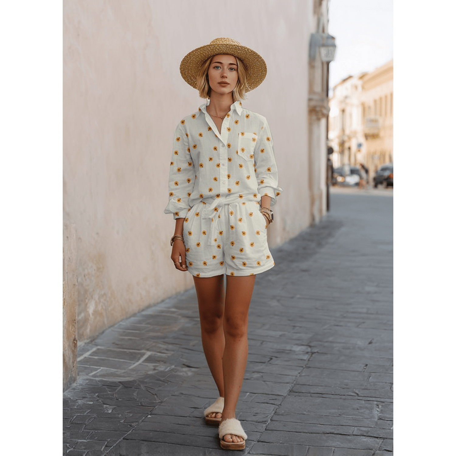 - Product: Tetra - Embroidery Sunflowers - Naturel