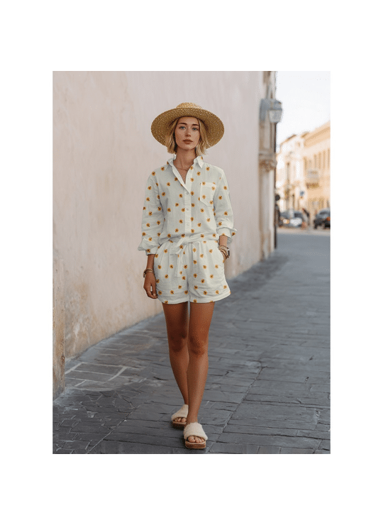 Tetra - Embroidery Sunflowers - Naturel