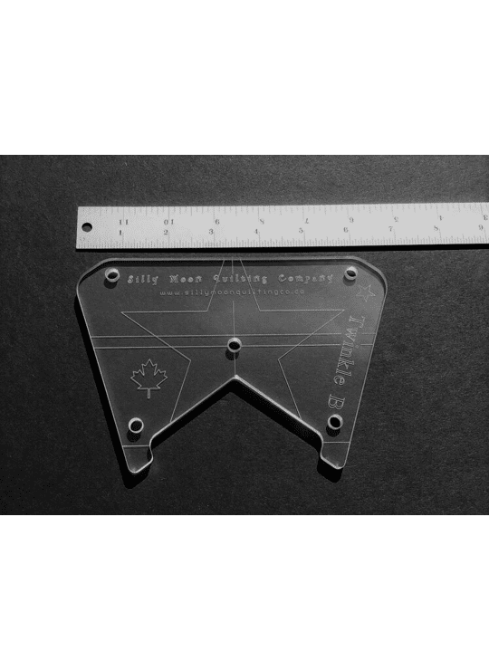 De perfecte ster ruler van Silly Moon Quilting. Gebruik de markeringslijnen op het liniaal om gemakkelijk te draaien en elke keer perfecte sterren te maken. De afgewerkte maat is 4 1/2" (11,43 cm) van punt tot punt. Deze ruler is met grote precisie gefreesd uit 1/4" (0,64 cm) dik helder acryl. De markeringen zijn nauwkeurig binnen de 0,002 inch, waardoor het gemakkelijk is om uit te lijnen en een constante tussenruimte te behouden. Bovendien zijn alle markeringen gegraveerd in plaats van geëtst of gezeefdrukt, waardoor ze gemakkelijk te zien zijn op elke stof. De markeringen slijten ook niet en zorgen voor slipweerstand. De randen van de rulers zijn afgerond om comfortabel in de hand te liggen, dus geen scherpe randen om aan vast te houden! Inclusief antisliptape voor extra weerstand, die desgewenst eenvoudig kan worden aangebracht. Deze rulers van 1/4" (0,64 cm) dik kunnen gebruikt worden op een longarm of naaimachine met hoge persvoetaansluiting (high shank). Twijfelt u erover of uw naaimachine high of low shank is, neem dan gerust contact met ons op.