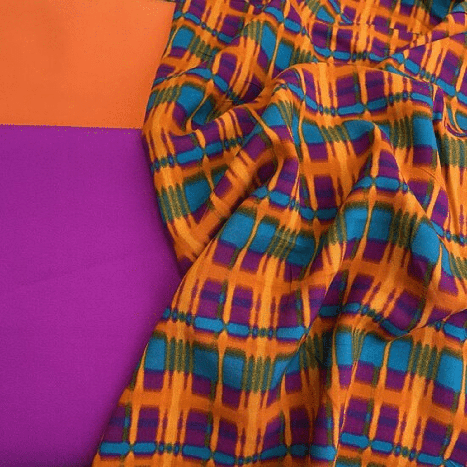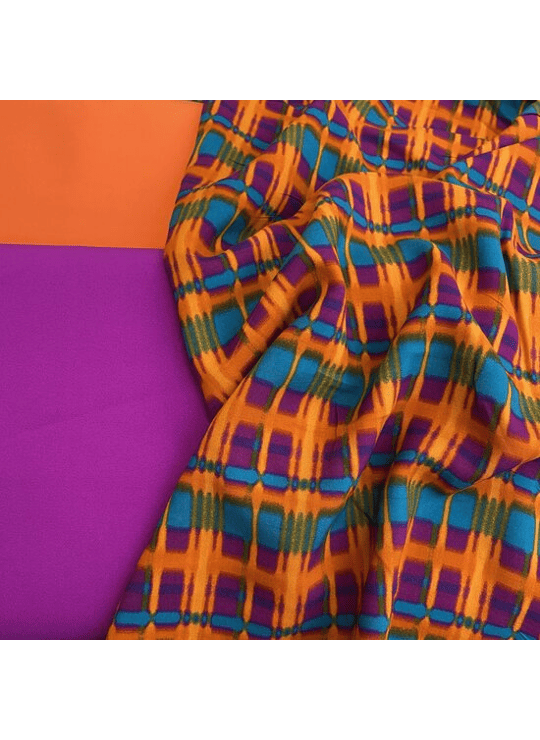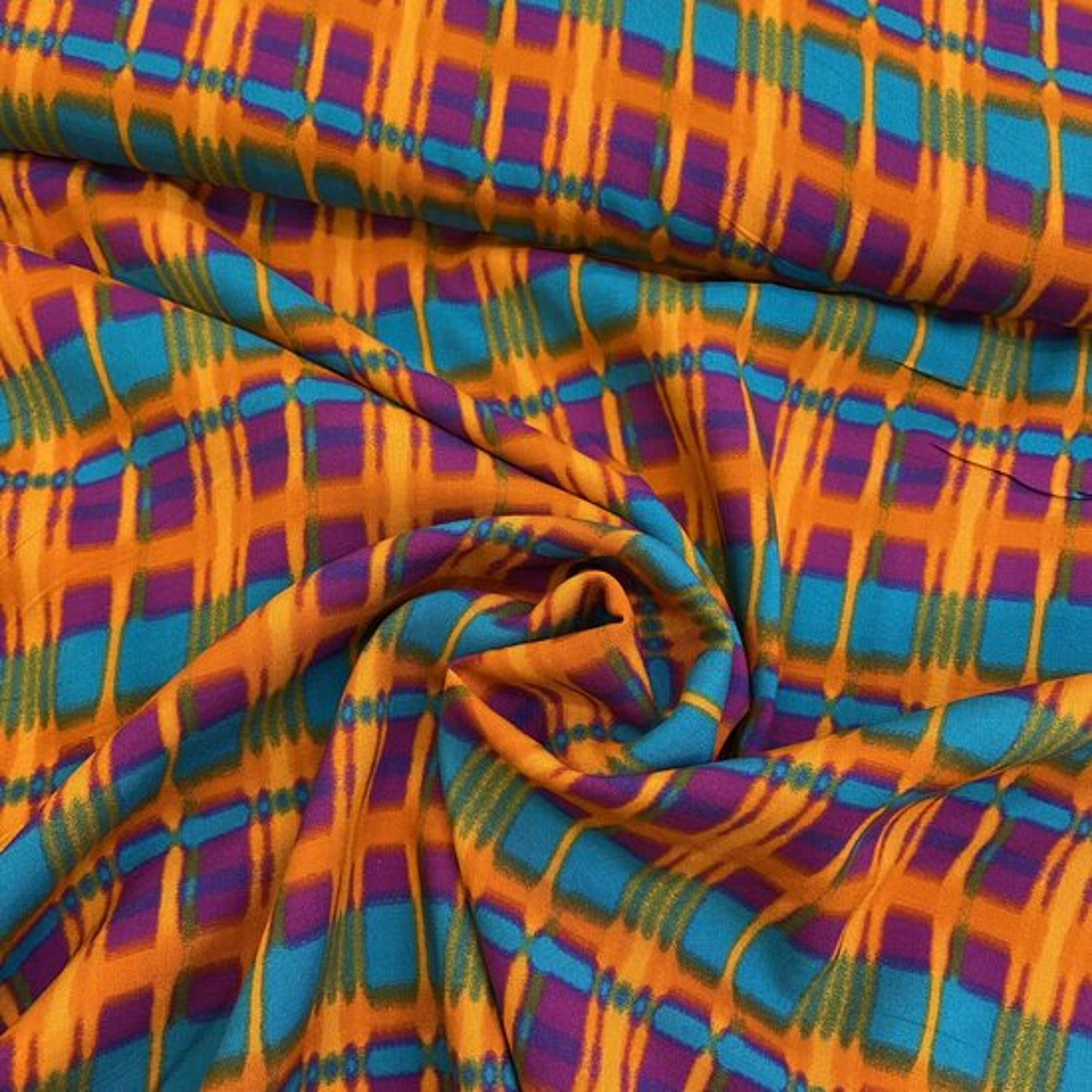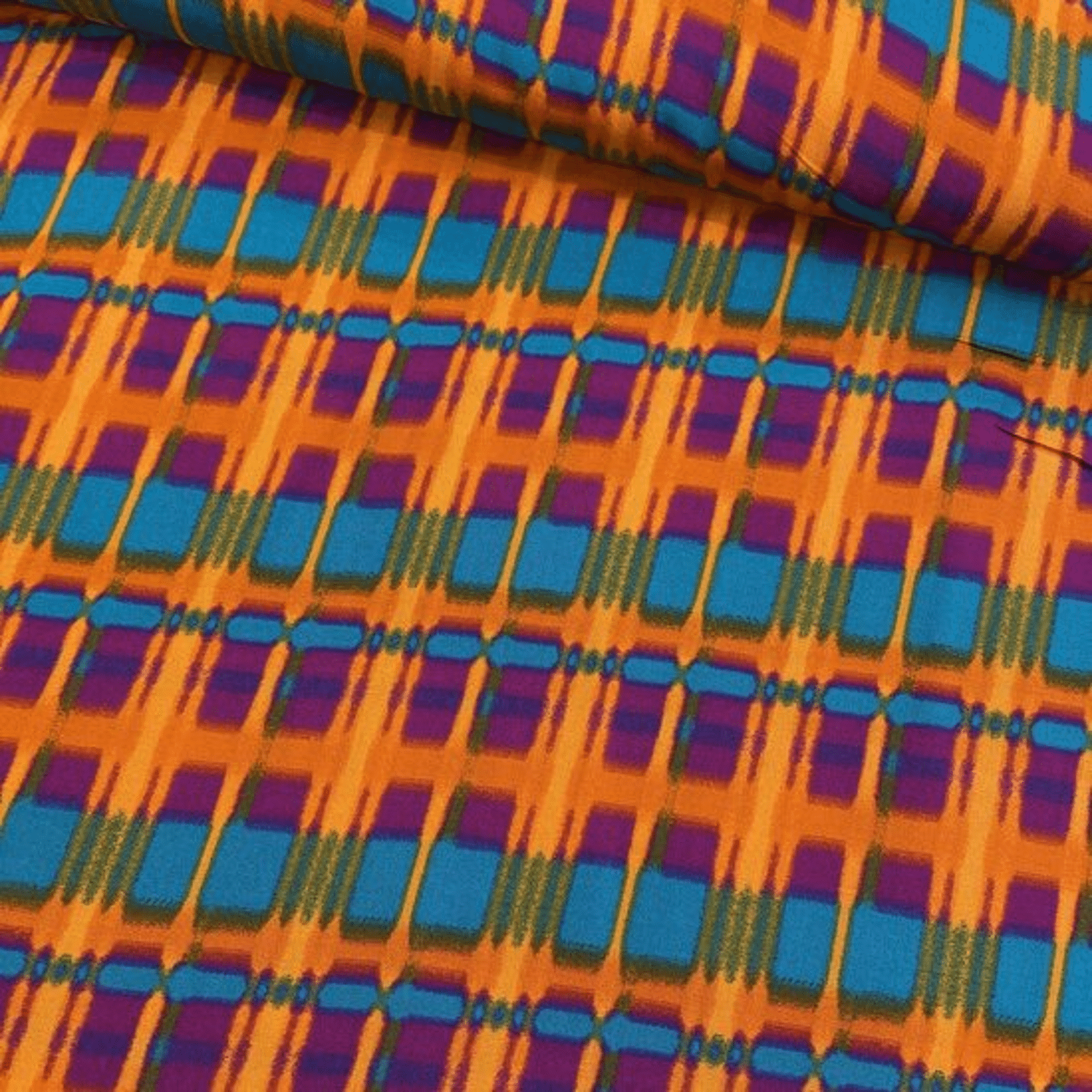 - Product: Viscose - Checkers - Oranje-Paars-Blauw