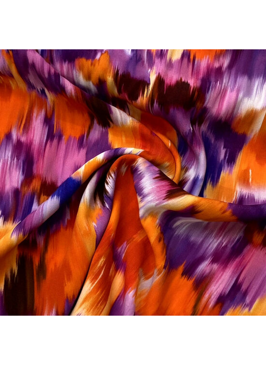 Viscose Crepe - Flowerfield in a Rush - Paars-Oranje
