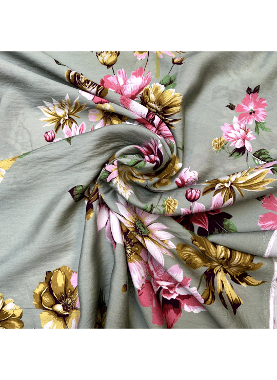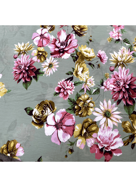 - Product: Viscose - Flowers - Lake Green